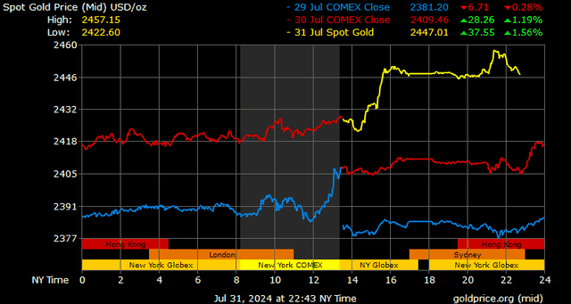 Trong tin tức khác, một cuộc không kích đã giết chết thủ lĩnh Hamas ở Tehran, Iran. Vụ ám sát đe dọa gây ra một cuộc bùng nổ lớn trong hành động quân sự trong khu vực, có thể bao gồm cả một cuộc đối đầu trực tiếp giữa Israel và Iran. Giá vàng và bạc đã chứng kiến một số hoạt động mua vào sau tin tức này.