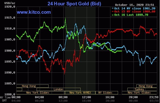 Trên thị trường vàng thế giới, giá vàng giao ngay chốt phiên cuối tuần tại Mỹ giảm 9,9 USD xuống 1.899,7 USD/ounce. Giá vàng tương lai giao tháng 11 trên sàn Comex New York giảm 6,9 USD xuống 1.898 USD/ounce.