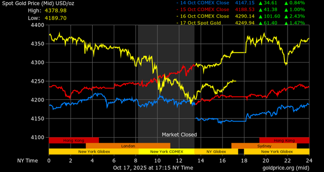 Giá vàng tăng cao và đạt mức cao kỷ lục mới qua đêm, ở mức 4.392 USD/ounce, dựa trên hợp đồng tương lai Comex tháng 12. Tuy nhiên, sau đó kim loại quý này đã quay đầu giảm khá mạnh.
