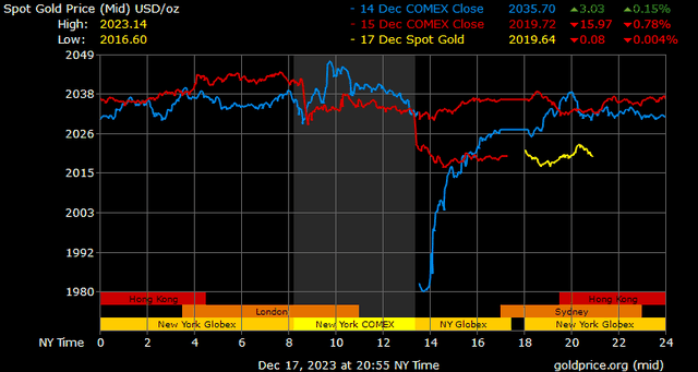 Biến động trên thị trường vàng trong tuần này được cho là khó dự đoán khi giới đầu tư tiếp tục đánh giá các dự báo kinh tế cập nhật của Cục Dự trữ Liên bang Mỹ (Fed) được công bố tại cuộc họp chính sách cuối cùng trong năm 2023. Ngoài ra, các nhà đầu tư và nhà giao dịch cũng sẽ theo dõi một số báo cáo quan trọng, trong đó có chỉ số chi tiêu tiêu dùng cá nhân sẽ được công bố vào thứ Năm.