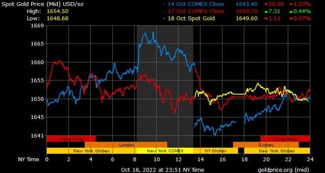 Giá vàng tương lai giao tháng 12/2022 trên sàn Comex New York giảm 8,2 USD xuống mức 1.655,8 USD/ounce.