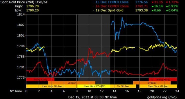 Giá vàng tương lai giao tháng 2/2023 trên sàn Comex New York tăng 12,4 USD lên mức 1.800,2 USD/ounce.