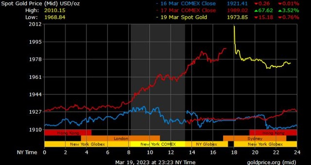 Cuộc khủng hoảng ngân hàng lớn nhất kể từ cuộc Đại khủng hoảng tài chính năm 2008 một lần nữa đã chứng minh vàng là tài sản trú ẩn an toàn cuối cùng. Kim loại quý này đã kết thúc ngày thứ Sáu tuần qua với mức tăng hơn 3% trong phiên.