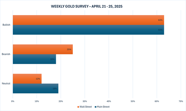 Khảo sát vàng hàng tuần mới nhất của Kitco News cho thấy các chuyên gia trong ngành và các nhà giao dịch bán lẻ đang kiềm chế xu hướng tăng giá vàng khi kim loại màu vàng này đang vững vàng trên mức 3.300 USD/ounce.