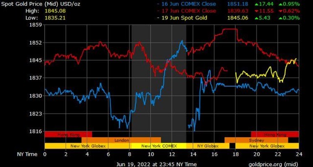 Giá vàng tương lai giao tháng 8/2022 trên sàn Comex New York giảm 9,3 USD xuống mức 1.840,6 USD/ounce.