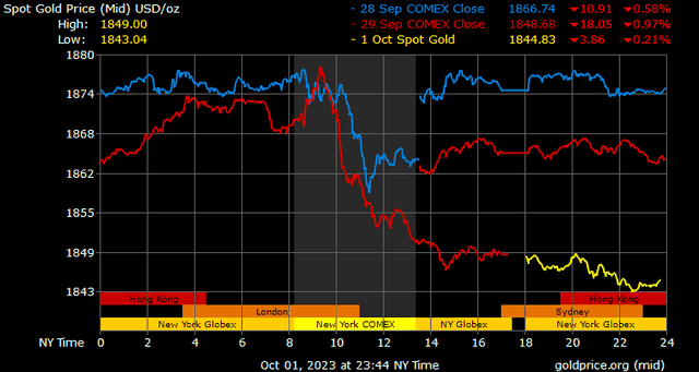 Thị trường vàng vừa có mức giảm hàng tháng lớn thứ hai trong năm nay, chỉ thua tháng 2, khi kết thúc tháng 9 đã giảm tới 99,8 USD, tương ứng giảm 5,08%.