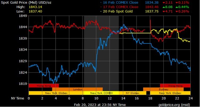 Giá vàng tương lai giao tháng 4/2023 trên sàn Comex New York giảm 1,6 USD xuống 1.850,2 USD/ounce.