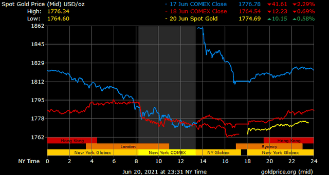Giá vàng tương lai giao tháng 7 trên sàn Comex New York tăng 5,5 USD lên 1.773,9 USD/ounce.