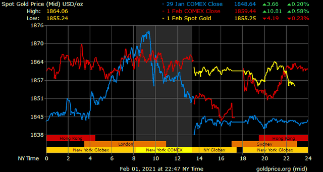 Giá vàng tương lai giao tháng 3 trên sàn Comex New York giảm 5,5 USD xuống 1.856,7 USD/ounce.