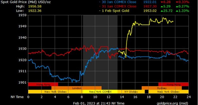 Giá vàng tương lai giao tháng 4/2023 trên sàn Comex New York giảm nhẹ 2,5 USD xuống 1.942,8 USD/ounce.