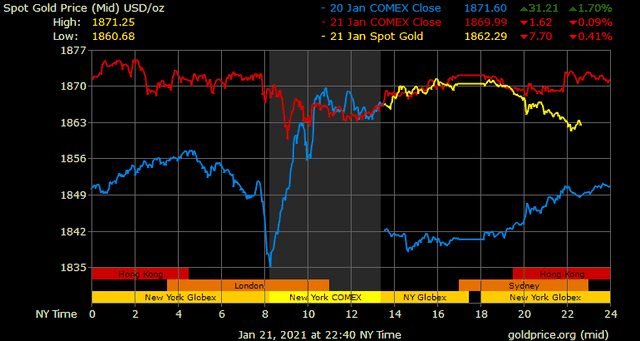Trong những phiên trước, có thời điểm vàng đã tăng hơn 30 USD/ounce trong phiên nhờ do kỳ vọng ông Joe Biden sẽ tăng gói kích thích để hỗ trợ nền kinh tế Mỹ. Trong năm 2020, vàng đã tăng 25% nhờ các gói hỗ trợ chi tiêu kích thích, do vậy giới đầu tư kỳ vọng cuộc đua tăng giá của vàng sẽ trở lại.