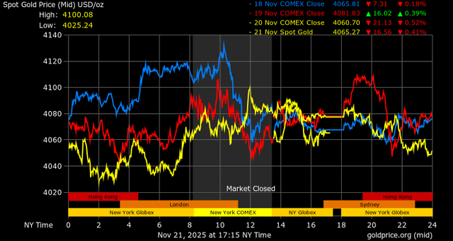 Trên thị trường vàng thế giới, giá vàng giao ngay chốt phiên hôm qua tại Mỹ giảm 12,5 USD, tương ứng giảm 0,31% xuống mức 4.065 USD/ounce.