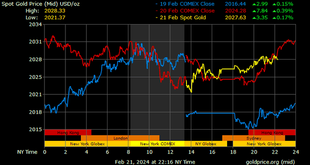 Trên thị trường vàng thế giới, giá vàng giao ngay chốt phiên hôm qua tại Mỹ tăng 1,7 USD lên 2.025,7 USD/ounce. Sang phiên châu Á sáng nay, giá vàng tiếp tục tăng nhẹ 1,3 USD lên 2.027 USD/ounce.
