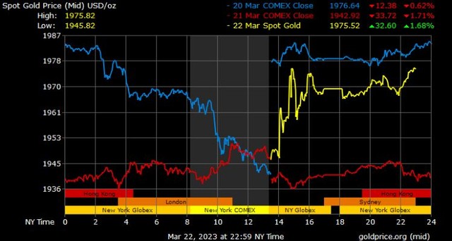 Cụ thể, cuộc họp FOMC của Cục Dự trữ Liên bang đã kết thúc vào chiều thứ Tư với việc tăng lãi suất 25 điểm cơ bản. Tuyên bố của FOMC cho biết, một đợt tăng lãi suất nữa trong năm nay có thể xảy ra và cuộc khủng hoảng ngân hàng hiện nay có thể sẽ tác động tiêu cực đến nền kinh tế Mỹ. Đồng thời, tuyên bố này đã bỏ từ ngữ đề cập đến việc tăng lãi suất liên tục, điều mà thị trường ban đầu cho là nghiêng về chính sách tiền tệ của Hoa Kỳ ít diều hâu hơn.