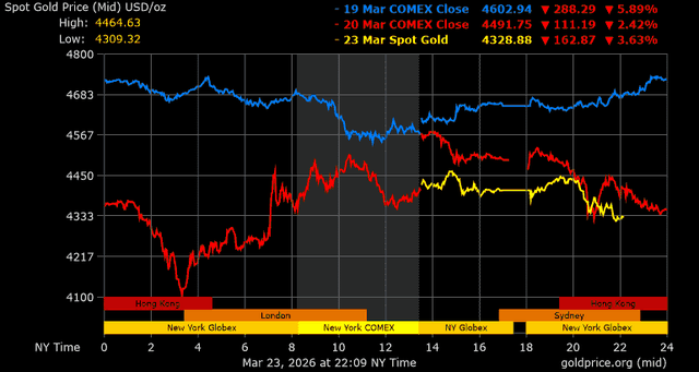 Giá vàng tương lai giao tháng 4/2026 trên sàn Comex New York hôm qua giảm 167,6 USD, tương ứng giảm 3,66% xuống mức 4.407,3 USD/ounce.