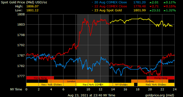 Giá vàng tương lai giao tháng 9 trên sàn Comex New York giảm 1,9 USD xuống 1.801,7 USD/ounce.