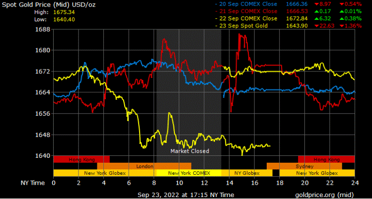 Giá vàng tương lai giao tháng 10/2022 trên sàn Comex New York giảm 26,1 USD xuống 1.645,3 USD/ounce.