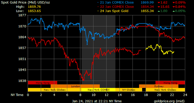 Giá vàng tương lai giao tháng 3 trên sàn Comex New York giảm 1,6 USD xuống 1.856,3 USD/ounce.