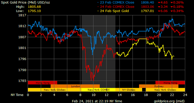 Giá vàng tương lai giao tháng 4 trên sàn Comex New York giảm 1,9 USD xuống 1.796 USD/ounce.