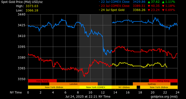 Ngoài ra, sự sụt giảm của kim loại quý này phần nào chịu ảnh hưởng bởi thị trường chung phản ứng tích cực với triển vọng mới về một thỏa thuận thương mại giữa Hoa Kỳ và Liên minh châu Âu.