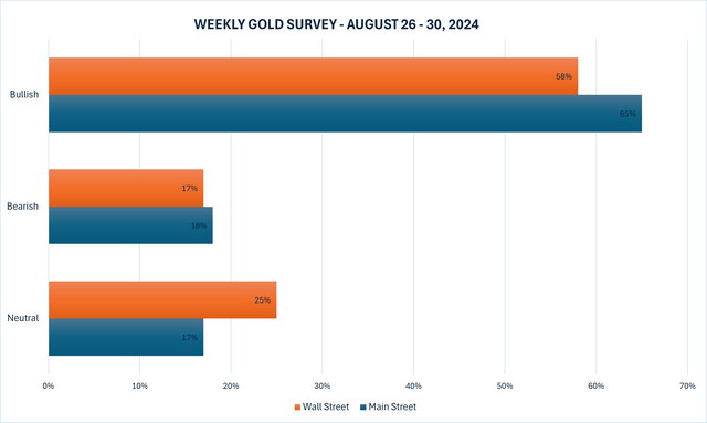 Cuộc khảo sát vàng hàng tuần mới nhất của Kitco News cho thấy phần lớn các chuyên gia trong ngành và nhà đầu tư bán lẻ đều tin rằng giá vàng sẽ tăng cao hơn mức cao nhất mọi thời đại gần đây của tuần này.