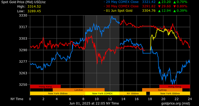 Giá vàng tương lai giao tháng 6/2025 trên sàn Comex New York tăng 22,2 USD, tương ứng tăng 0,67% lên mức 3.317,1 USD/ounce.