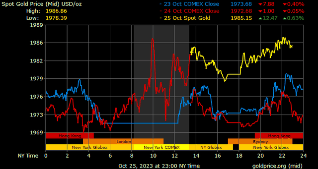 “Sự bất ổn địa chính trị và xung đột ở Israel - Gaza có thể vẫn tiếp tục thúc đẩy nhu cầu trú ẩn đối với kim loại quý và một động lực được nhấn mạnh bởi lo ngại về suy thoái kinh tế ở châu Âu sau khi công bố dữ liệu PMI đáng thất vọng vào thứ Ba. Tuy nhiên, khả năng tăng giá của vàng thỏi đã bị hạn chế sau khi dữ liệu kinh tế Mỹ tốt hơn mong đợi được công bố, dẫn đến đồng đô la Mỹ tăng giá qua đêm, hỗ trợ lãi suất trái phiếu kho bạc và làm giảm sức hấp dẫn của vàng”, Evangelista nói thêm.