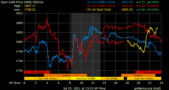 Giá vàng tương lai giao tháng 8 trên sàn Comex New York tăng 5,8 USD lên 1.807,6 USD/ounce.