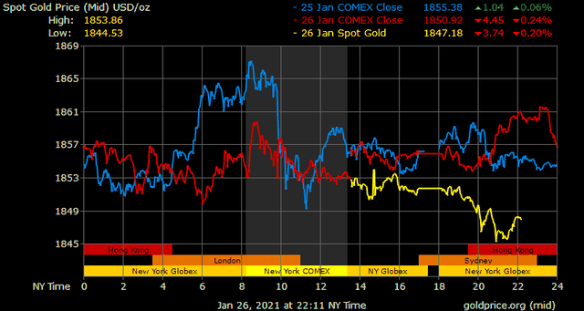 Giá vàng tương lai giao tháng 3 trên sàn Comex New York giảm 6,4 USD xuống 1.846,4 USD/ounce.