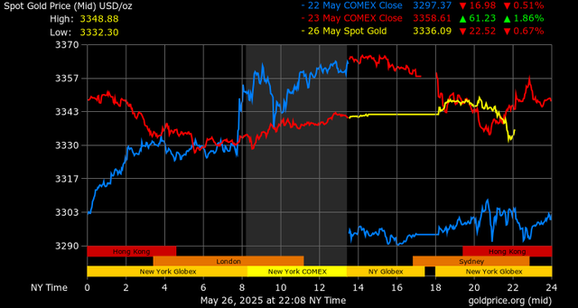 Thị trường Hoa Kỳ đóng cửa nghỉ lễ Memorial Day từ cuối tuần, nhưng thị trường vàng vẫn chứng kiến một số hoạt động chốt lời và vẫn duy trì mức hỗ trợ trên 3.000 USD/ounce.