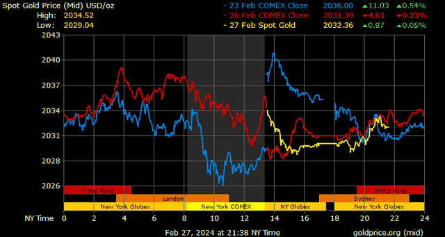 Trên thị trường vàng thế giới, giá vàng giao ngay chốt phiên hôm qua tại Mỹ giảm nhẹ 0,8 USD xuống 2.030,4 USD/ounce. Sang phiên châu Á sáng nay, giá vàng đảo chiều tăng 1,8 USD lên 2.032,2 USD/ounce.