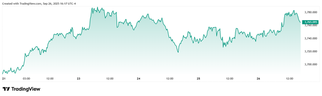 Giá vàng tương lai giao tháng 12/2025 trên sàn Comex New York tăng 9,2 USD, đóng cửa ở mức 3.780 USD/ounce.