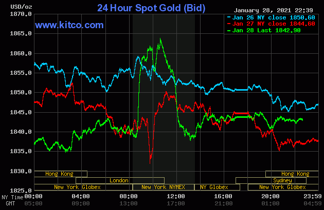Giá vàng tương lai giao tháng 3 trên sàn Comex New York tăng 2,8 USD lên 1.842 USD/ounce.