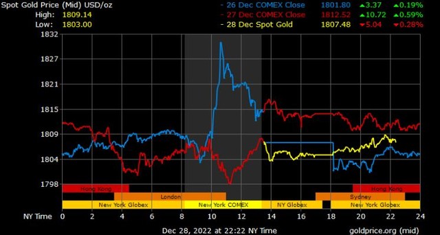 Giá vàng tương lai giao tháng 2/2023 trên sàn Comex New York giảm 7,3 USD lên 1.815,8 USD/ounce.
