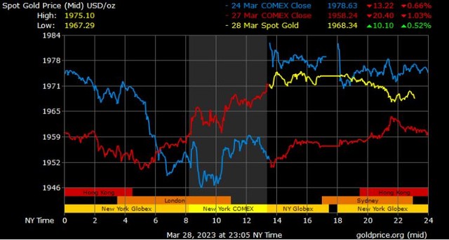 Vàng đã chứng kiến mức tăng mới khi các nhà quản lý ngân hàng hàng đầu của Hoa Kỳ phải đối mặt với những câu hỏi hóc búa về nguyên nhân dẫn đến sự sụp đổ bất ngờ của SVB và Signature Bank.