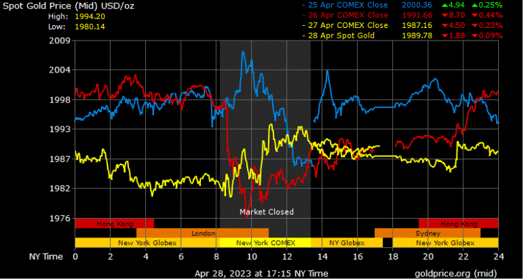 Giá vàng tương lai giao tháng 6/2023 trên sàn Comex New York tăng 01, USD, tương ứng tăng 0,01% lên 1.999,1 USD/ounce.