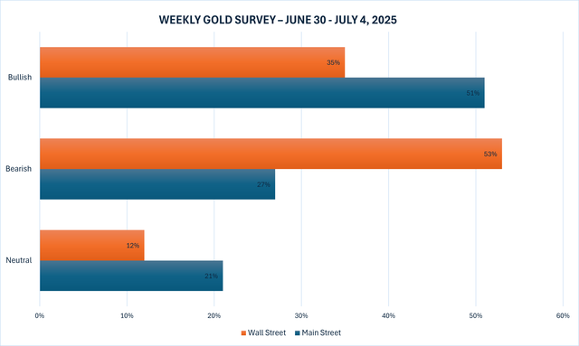 Cuộc khảo sát vàng hàng tuần mới nhất của Kitco News cho thấy các chuyên gia trong ngành không mấy lạc quan về triển vọng ngắn hạn của vàng, trong khi các nhà giao dịch bán lẻ vẫn giữ quan điểm lạc quan nhẹ về giá vàng.
