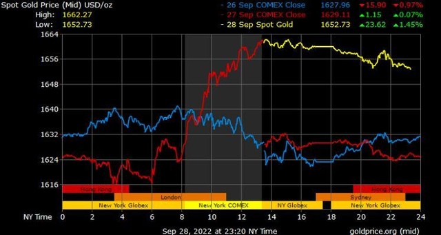 Giá vàng tương lai giao tháng 12/2022 trên sàn Comex New York tăng 33,8 USD lên 1.670 USD/ounce.