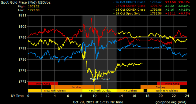 Giá vàng tương lai giao tháng 11 trên sàn Comex New giảm gần 18 USD xuống 1.785 USD/ounce.