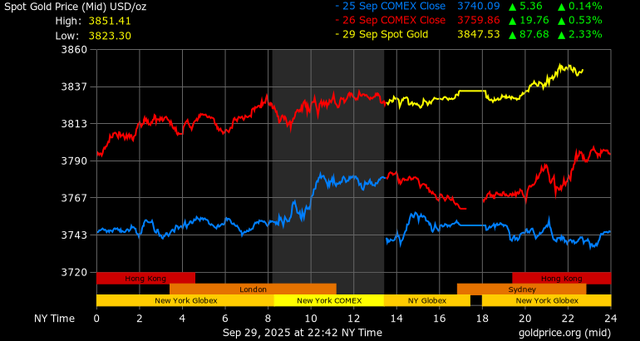 Vàng tăng mạnh và lập kỷ lục mới khi nhu cầu trú ẩn an toàn nổi lên do chính phủ Hoa Kỳ có thể đóng cửa vào giữa tuần. Nếu không được thông qua dự luật ngân sách để tài trợ cho các chương trình liên bang, hoạt động của chính phủ sẽ bị đình trệ vào ngày 1/10, khiến các nhà đầu tư phải tìm đến kênh phòng ngừa rủi ro gián đoạn kinh tế.