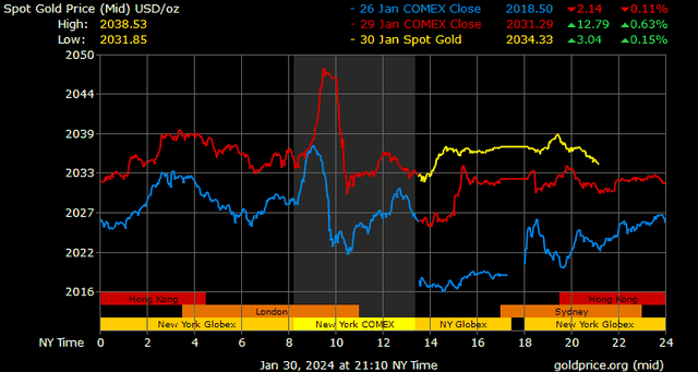Giá vàng tiếp tục tăng nhẹ do nhu cầu trú ẩn an toàn nhẹ hơn sau cuộc tấn công khủng bố của Jordan khiến 3 lính Mỹ thiệt mạng. Hiện thế giới đang hồi hộp chờ đợi phản ứng của quân đội Mỹ. Và giá vàng có thể tăng mạnh hơn khi Mỹ thực hiện đòn tấn công trả đũa, có khả năng mạnh hơn những phản ứng gần đây đối với các cuộc tấn công bằng tên lửa của Houthi vào các tàu ở Biển Đỏ.