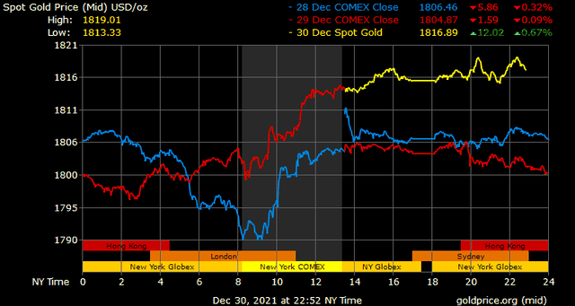 Giá vàng tương lai giao tháng 2/2022 trên sàn Comex New York tăng gần 4,5 USD lên 1.88,5 USD/ounce.