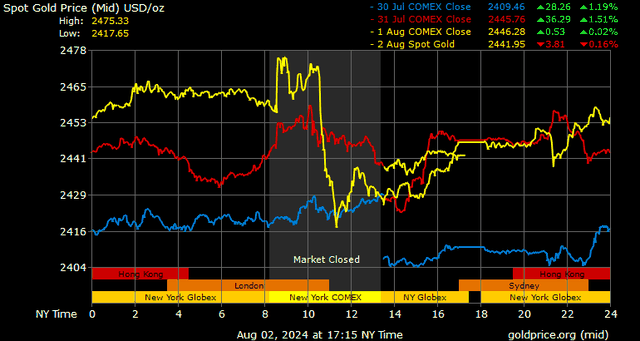 Bất ổn địa chính trị ở Trung Đông và dữ liệu kinh tế đáng thất vọng đã giúp đẩy giá vàng lên mức cao kỷ lục mới trên 2.500 USD/ounce. Những mức tăng đó đã chứng kiến một số đợt mua theo sau ngắn ngủi vào thứ Sáu sau khi báo cáo bảng lương phi nông nghiệp đáng thất vọng đáng kể cho thấy 114.000 việc làm đã được tạo ra vào tháng trước. Nền kinh tế Hoa Kỳ chứng kiến tốc độ tăng trưởng việc làm chậm nhất trong 4 năm.