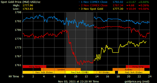 Giá vàng tương lai giao tháng 12 trên sàn Comex New tăng gần 13 USD lên 1.776,8 USD/ounce.