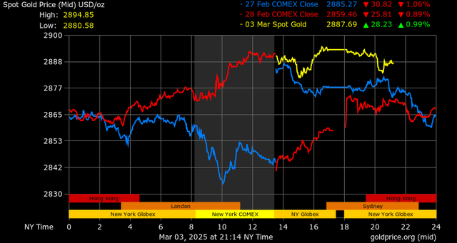 Thêm vào đó, thuế quan thương mại của Hoa Kỳ đối với Mexico, Canada và Trung Quốc sẽ có hiệu lực vào ngày 4/3. Do đó, giá vàng đã đảo chiều tăng vọt sau khi chứng kiến tuần cuối cùng của tháng 2 tồi tệ nhất trong khoảng 3 tháng qua.