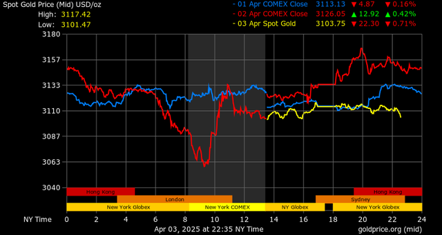 Những lo ngại về sự chậm lại của tăng trưởng kinh tế toàn cầu đang gia tăng, sau khi đã tăng cao, trong bối cảnh các mức thuế quan mới của Hoa Kỳ được công bố vào chiều thứ Tư. Với thị trường hiện đang mất bình tĩnh, đối với nhiều nhà giao dịch, đây là trường hợp "nếu bạn không thể bán những gì bạn muốn, bạn sẽ bán những gì bạn có thể". Đó có thể là một phần lý do khiến thị trường vàng và bạc trú ẩn an toàn bán tháo, bất chấp thị trường chung có tâm lý tránh rủi ro.