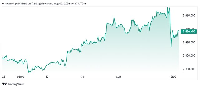 "Tôi nghĩ rằng nếu có bất cứ điều gì, thì đây là cơ hội để mua vàng. Tôi nghĩ chúng ta sẽ thấy vàng tăng cao hơn vào tuần tới để vượt qua mức 2.500 USD/ounce một lần nữa", ông nói khi giá giao ngay của kim loại màu vàng này được giao dịch ở mức gần 2.420 USD/ounce.