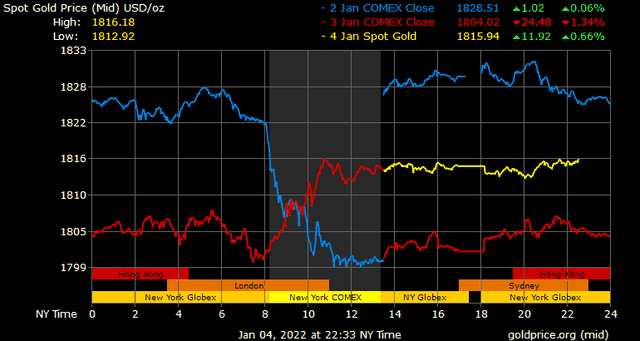 Giá vàng tương lai giao tháng 2/2022 trên sàn Comex New York tăng gần 4 USD lên 1.804 USD/ounce.