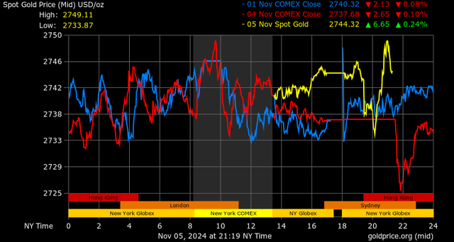 Trong khi đó, hiện các điểm bỏ phiếu đã đóng cửa tại hơn hai chục bang và kết quả thăm dò sớm bắt đầu được công bố, sẽ làm tăng thêm tính biến động trên thị trường tài chính, trong đó không ngoại trừ kim loại quý. Giao dịch ở nhiều thị trường có thể biến động trong phần còn lại của tuần này khi kết quả bầu cử Hoa Kỳ được công bố.