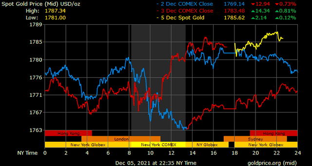 Giá vàng tương lai giao tháng 1/2022 trên sàn Comex New York tăng hơn 2 USD lên 1.785,2 USD/ounce.